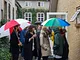 Vagtskiftet ved Marselisborg Slot skærtorsdag kl. 12 tiltrak mange fremmødte, mens politiets indsatsleder undervejs tog sig tid til at besvare spørgsmål fra en nysgerrig dreng.