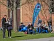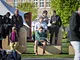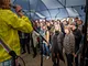 Vagtskiftet ved Marselisborg Slot skærtorsdag kl. 12 tiltrak mange fremmødte, mens politiets indsatsleder undervejs tog sig tid til at besvare spørgsmål fra en nysgerrig dreng.