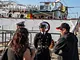 Vagtskiftet ved Marselisborg Slot skærtorsdag kl. 12 tiltrak mange fremmødte, mens politiets indsatsleder undervejs tog sig tid til at besvare spørgsmål fra en nysgerrig dreng.