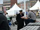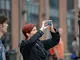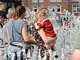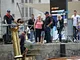 Vagtskiftet ved Marselisborg Slot skærtorsdag kl. 12 tiltrak mange fremmødte, mens politiets indsatsleder undervejs tog sig tid til at besvare spørgsmål fra en nysgerrig dreng.