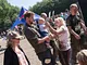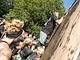 Vagtskiftet ved Marselisborg Slot skærtorsdag kl. 12 tiltrak mange fremmødte, mens politiets indsatsleder undervejs tog sig tid til at besvare spørgsmål fra en nysgerrig dreng.