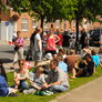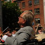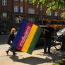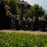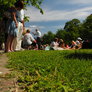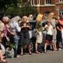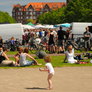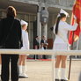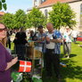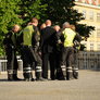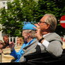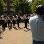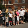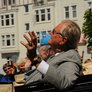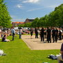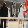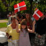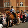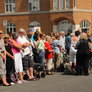 Vagtskiftet ved Marselisborg Slot skærtorsdag kl. 12 tiltrak mange fremmødte, mens politiets indsatsleder undervejs tog sig tid til at besvare spørgsmål fra en nysgerrig dreng.