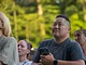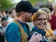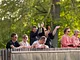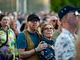 Vagtskiftet ved Marselisborg Slot skærtorsdag kl. 12 tiltrak mange fremmødte, mens politiets indsatsleder undervejs tog sig tid til at besvare spørgsmål fra en nysgerrig dreng.