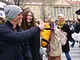 Vagtskiftet ved Marselisborg Slot skærtorsdag kl. 12 tiltrak mange fremmødte, mens politiets indsatsleder undervejs tog sig tid til at besvare spørgsmål fra en nysgerrig dreng.