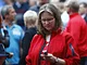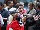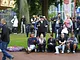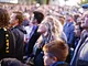Vagtskiftet ved Marselisborg Slot skærtorsdag kl. 12 tiltrak mange fremmødte, mens politiets indsatsleder undervejs tog sig tid til at besvare spørgsmål fra en nysgerrig dreng.