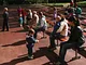 Vagtskiftet ved Marselisborg Slot skærtorsdag kl. 12 tiltrak mange fremmødte, mens politiets indsatsleder undervejs tog sig tid til at besvare spørgsmål fra en nysgerrig dreng.