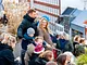 Vagtskiftet ved Marselisborg Slot skærtorsdag kl. 12 tiltrak mange fremmødte, mens politiets indsatsleder undervejs tog sig tid til at besvare spørgsmål fra en nysgerrig dreng.