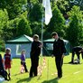 Vagtskiftet ved Marselisborg Slot skærtorsdag kl. 12 tiltrak mange fremmødte, mens politiets indsatsleder undervejs tog sig tid til at besvare spørgsmål fra en nysgerrig dreng.