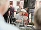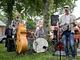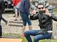 Vagtskiftet ved Marselisborg Slot skærtorsdag kl. 12 tiltrak mange fremmødte, mens politiets indsatsleder undervejs tog sig tid til at besvare spørgsmål fra en nysgerrig dreng.