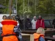 Vagtskiftet ved Marselisborg Slot skærtorsdag kl. 12 tiltrak mange fremmødte, mens politiets indsatsleder undervejs tog sig tid til at besvare spørgsmål fra en nysgerrig dreng.