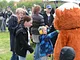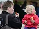 Vagtskiftet ved Marselisborg Slot skærtorsdag kl. 12 tiltrak mange fremmødte, mens politiets indsatsleder undervejs tog sig tid til at besvare spørgsmål fra en nysgerrig dreng.