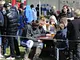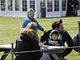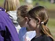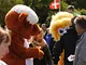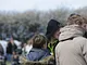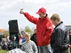 Vagtskiftet ved Marselisborg Slot skærtorsdag kl. 12 tiltrak mange fremmødte, mens politiets indsatsleder undervejs tog sig tid til at besvare spørgsmål fra en nysgerrig dreng.