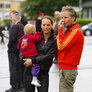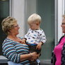 Vagtskiftet ved Marselisborg Slot skærtorsdag kl. 12 tiltrak mange fremmødte, mens politiets indsatsleder undervejs tog sig tid til at besvare spørgsmål fra en nysgerrig dreng.
