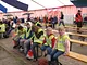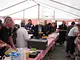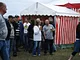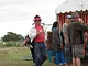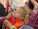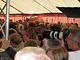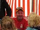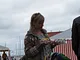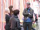 Vagtskiftet ved Marselisborg Slot skærtorsdag kl. 12 tiltrak mange fremmødte, mens politiets indsatsleder undervejs tog sig tid til at besvare spørgsmål fra en nysgerrig dreng.