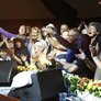 Vagtskiftet ved Marselisborg Slot skærtorsdag kl. 12 tiltrak mange fremmødte, mens politiets indsatsleder undervejs tog sig tid til at besvare spørgsmål fra en nysgerrig dreng.