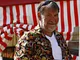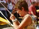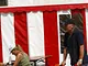 Vagtskiftet ved Marselisborg Slot skærtorsdag kl. 12 tiltrak mange fremmødte, mens politiets indsatsleder undervejs tog sig tid til at besvare spørgsmål fra en nysgerrig dreng.