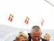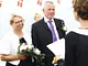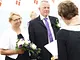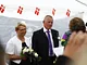 Vagtskiftet ved Marselisborg Slot skærtorsdag kl. 12 tiltrak mange fremmødte, mens politiets indsatsleder undervejs tog sig tid til at besvare spørgsmål fra en nysgerrig dreng.