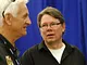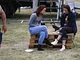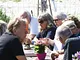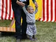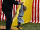 Vagtskiftet ved Marselisborg Slot skærtorsdag kl. 12 tiltrak mange fremmødte, mens politiets indsatsleder undervejs tog sig tid til at besvare spørgsmål fra en nysgerrig dreng.