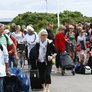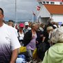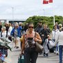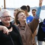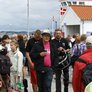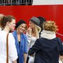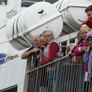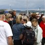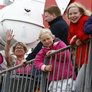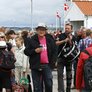 Vagtskiftet ved Marselisborg Slot skærtorsdag kl. 12 tiltrak mange fremmødte, mens politiets indsatsleder undervejs tog sig tid til at besvare spørgsmål fra en nysgerrig dreng.