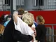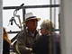 Vagtskiftet ved Marselisborg Slot skærtorsdag kl. 12 tiltrak mange fremmødte, mens politiets indsatsleder undervejs tog sig tid til at besvare spørgsmål fra en nysgerrig dreng.