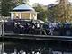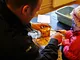 Vagtskiftet ved Marselisborg Slot skærtorsdag kl. 12 tiltrak mange fremmødte, mens politiets indsatsleder undervejs tog sig tid til at besvare spørgsmål fra en nysgerrig dreng.