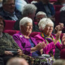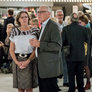 Vagtskiftet ved Marselisborg Slot skærtorsdag kl. 12 tiltrak mange fremmødte, mens politiets indsatsleder undervejs tog sig tid til at besvare spørgsmål fra en nysgerrig dreng.