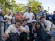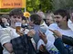Vagtskiftet ved Marselisborg Slot skærtorsdag kl. 12 tiltrak mange fremmødte, mens politiets indsatsleder undervejs tog sig tid til at besvare spørgsmål fra en nysgerrig dreng.