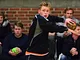 Vagtskiftet ved Marselisborg Slot skærtorsdag kl. 12 tiltrak mange fremmødte, mens politiets indsatsleder undervejs tog sig tid til at besvare spørgsmål fra en nysgerrig dreng.