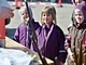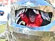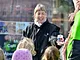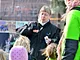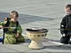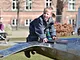 Vagtskiftet ved Marselisborg Slot skærtorsdag kl. 12 tiltrak mange fremmødte, mens politiets indsatsleder undervejs tog sig tid til at besvare spørgsmål fra en nysgerrig dreng.