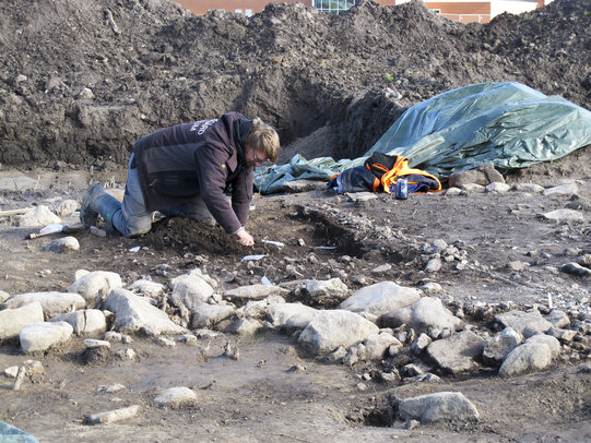 Nyfundet gravhøj er under udgravning af folkene fra Moesgård Museum