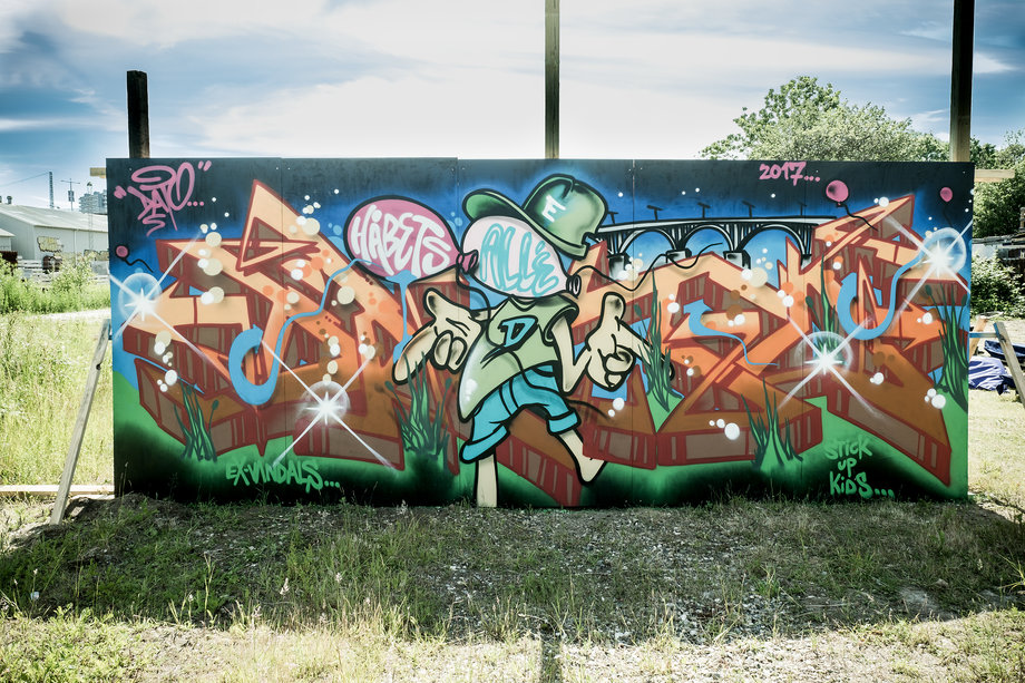 300 gæster til gadefest i Håbets Allé, Gratis mad fra Gullashkanonen, Grafittimaler, Sækkestole, Hængekøjer, Kolde Øl og vand, Bål, Markedsboder og en hel masse andet