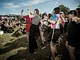Vagtskiftet ved Marselisborg Slot skærtorsdag kl. 12 tiltrak mange fremmødte, mens politiets indsatsleder undervejs tog sig tid til at besvare spørgsmål fra en nysgerrig dreng.