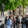 Vagtskiftet ved Marselisborg Slot skærtorsdag kl. 12 tiltrak mange fremmødte, mens politiets indsatsleder undervejs tog sig tid til at besvare spørgsmål fra en nysgerrig dreng.
