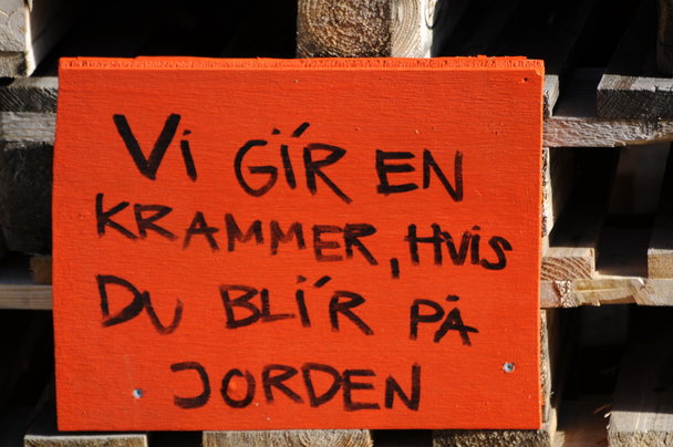 5. C fra Risskov Skole havde fabrikeret skilte med nye "By-Regler", men da læreren forbød at tage fotos af børnenes ansigter, blev det et noget amputeret galleri af den seance.