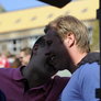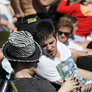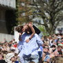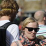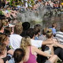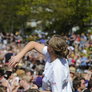 Vagtskiftet ved Marselisborg Slot skærtorsdag kl. 12 tiltrak mange fremmødte, mens politiets indsatsleder undervejs tog sig tid til at besvare spørgsmål fra en nysgerrig dreng.