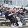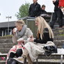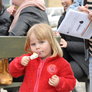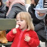 Vagtskiftet ved Marselisborg Slot skærtorsdag kl. 12 tiltrak mange fremmødte, mens politiets indsatsleder undervejs tog sig tid til at besvare spørgsmål fra en nysgerrig dreng.