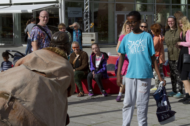 Foran Musikhuset i Århus festuge, tumler Væltepeter rundt alias Monsieur Culbuto og skaber en sjov dag, for børn og barnlige sjæle. Han bliver indimellem flyttet rundt i området og folk samles hurtigt om ham. Et skub, og han er med på legen.