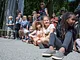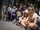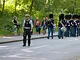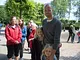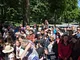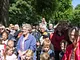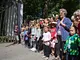 Vagtskiftet ved Marselisborg Slot skærtorsdag kl. 12 tiltrak mange fremmødte, mens politiets indsatsleder undervejs tog sig tid til at besvare spørgsmål fra en nysgerrig dreng.