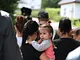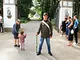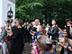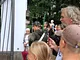 Vagtskiftet ved Marselisborg Slot skærtorsdag kl. 12 tiltrak mange fremmødte, mens politiets indsatsleder undervejs tog sig tid til at besvare spørgsmål fra en nysgerrig dreng.
