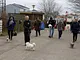Vagtskiftet ved Marselisborg Slot skærtorsdag kl. 12 tiltrak mange fremmødte, mens politiets indsatsleder undervejs tog sig tid til at besvare spørgsmål fra en nysgerrig dreng.