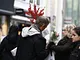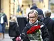 Vagtskiftet ved Marselisborg Slot skærtorsdag kl. 12 tiltrak mange fremmødte, mens politiets indsatsleder undervejs tog sig tid til at besvare spørgsmål fra en nysgerrig dreng.