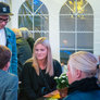 Vagtskiftet ved Marselisborg Slot skærtorsdag kl. 12 tiltrak mange fremmødte, mens politiets indsatsleder undervejs tog sig tid til at besvare spørgsmål fra en nysgerrig dreng.