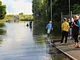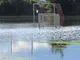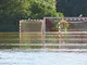 Her et halvt døgn efter det voldsomme regnvejr er dele af Lystrup stadig under vand. Især LIF's fodboldbaner er hårdt ramt. De eneste der mundre sig der er mågerne. Lystrupvej er også stadig oversvømmet.