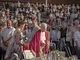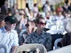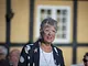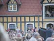Vagtskiftet ved Marselisborg Slot skærtorsdag kl. 12 tiltrak mange fremmødte, mens politiets indsatsleder undervejs tog sig tid til at besvare spørgsmål fra en nysgerrig dreng.