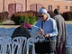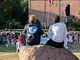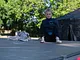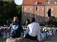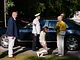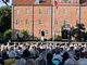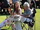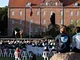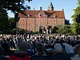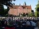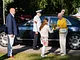 Vagtskiftet ved Marselisborg Slot skærtorsdag kl. 12 tiltrak mange fremmødte, mens politiets indsatsleder undervejs tog sig tid til at besvare spørgsmål fra en nysgerrig dreng.