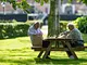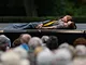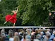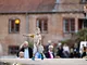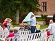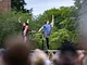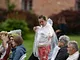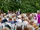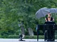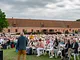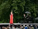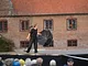 Vagtskiftet ved Marselisborg Slot skærtorsdag kl. 12 tiltrak mange fremmødte, mens politiets indsatsleder undervejs tog sig tid til at besvare spørgsmål fra en nysgerrig dreng.