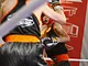 Vagtskiftet ved Marselisborg Slot skærtorsdag kl. 12 tiltrak mange fremmødte, mens politiets indsatsleder undervejs tog sig tid til at besvare spørgsmål fra en nysgerrig dreng.