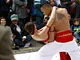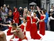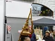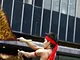 Vagtskiftet ved Marselisborg Slot skærtorsdag kl. 12 tiltrak mange fremmødte, mens politiets indsatsleder undervejs tog sig tid til at besvare spørgsmål fra en nysgerrig dreng.