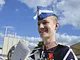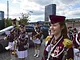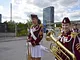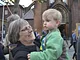 Vagtskiftet ved Marselisborg Slot skærtorsdag kl. 12 tiltrak mange fremmødte, mens politiets indsatsleder undervejs tog sig tid til at besvare spørgsmål fra en nysgerrig dreng.