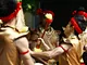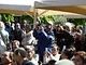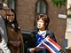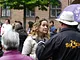 Vagtskiftet ved Marselisborg Slot skærtorsdag kl. 12 tiltrak mange fremmødte, mens politiets indsatsleder undervejs tog sig tid til at besvare spørgsmål fra en nysgerrig dreng.